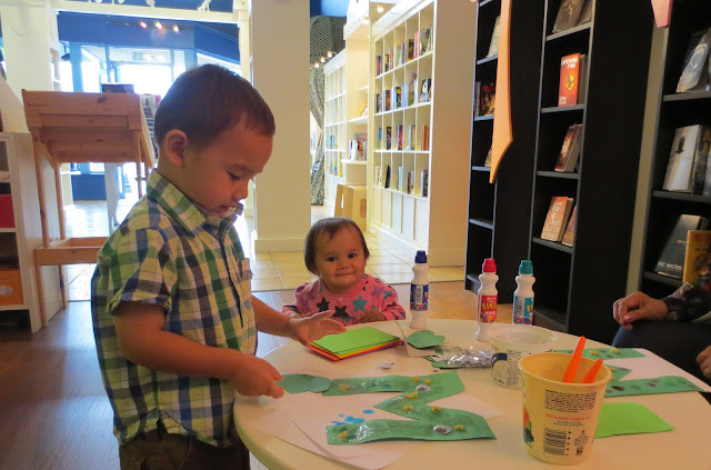 We had a MMMarvelous time this morning mastering the letter 'M' at mmmmomstown Victoria Alphabet Play! We started by gluing pasta, googly eyes, arms, feet and teeth to construction paper cutouts of the letter M. Our 'Macaroni Monsters' were masterpieces!